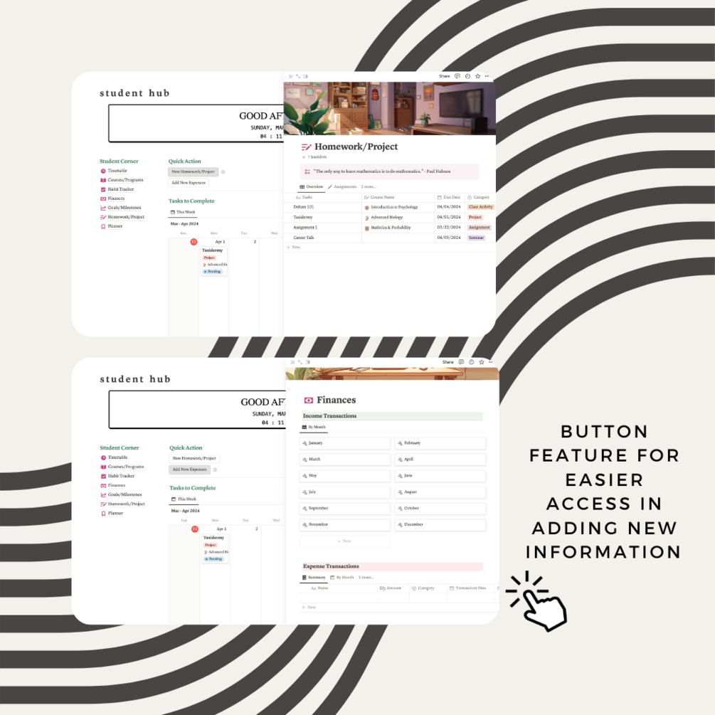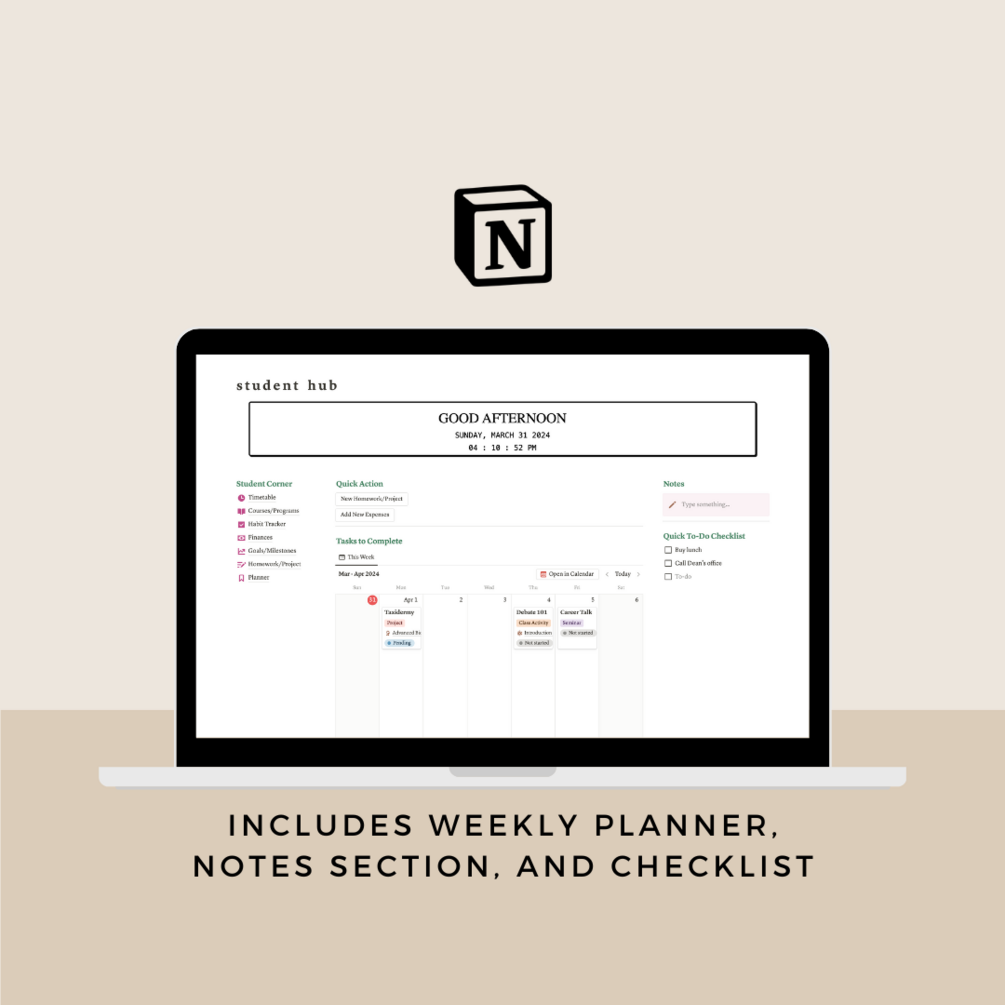 A notion template dedicated for students to organize both school and personal tasks