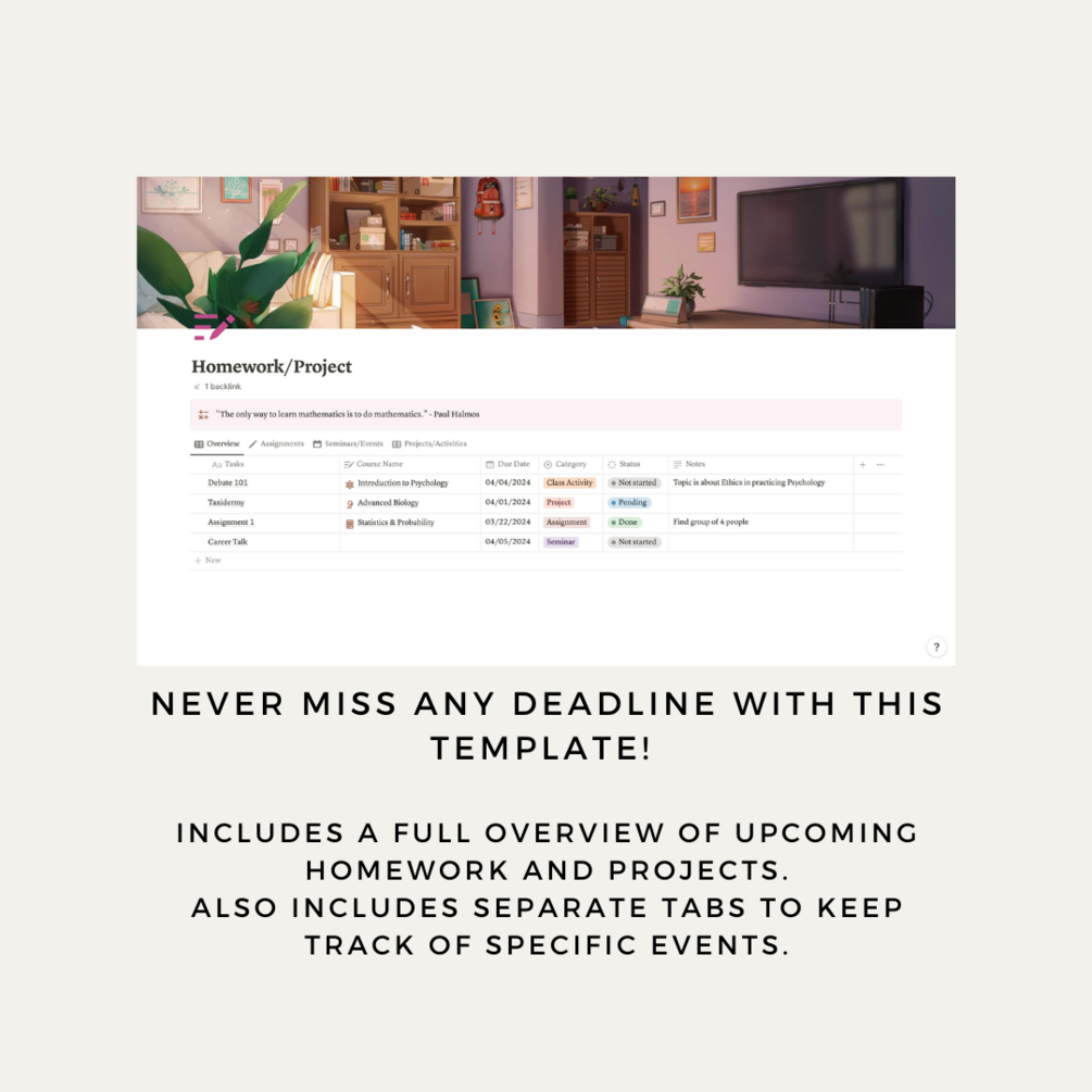 Student Digital Notion Planner | Minimalist Academic School Planner | Homework Tracker